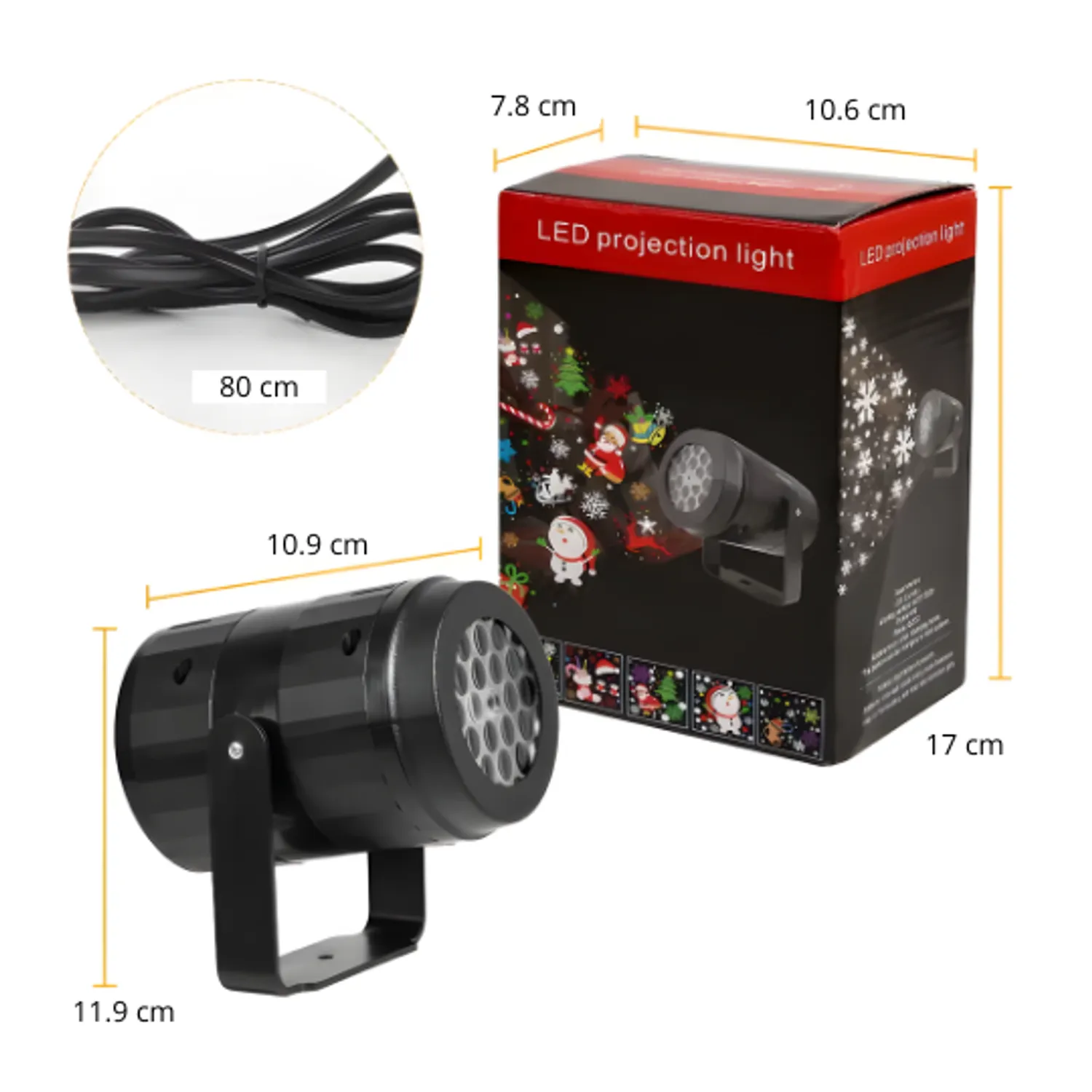 Ilumina tus espacios con copos de nieve animados, renos, estrellas y efectos multicolor que crean un ambiente mágico.
